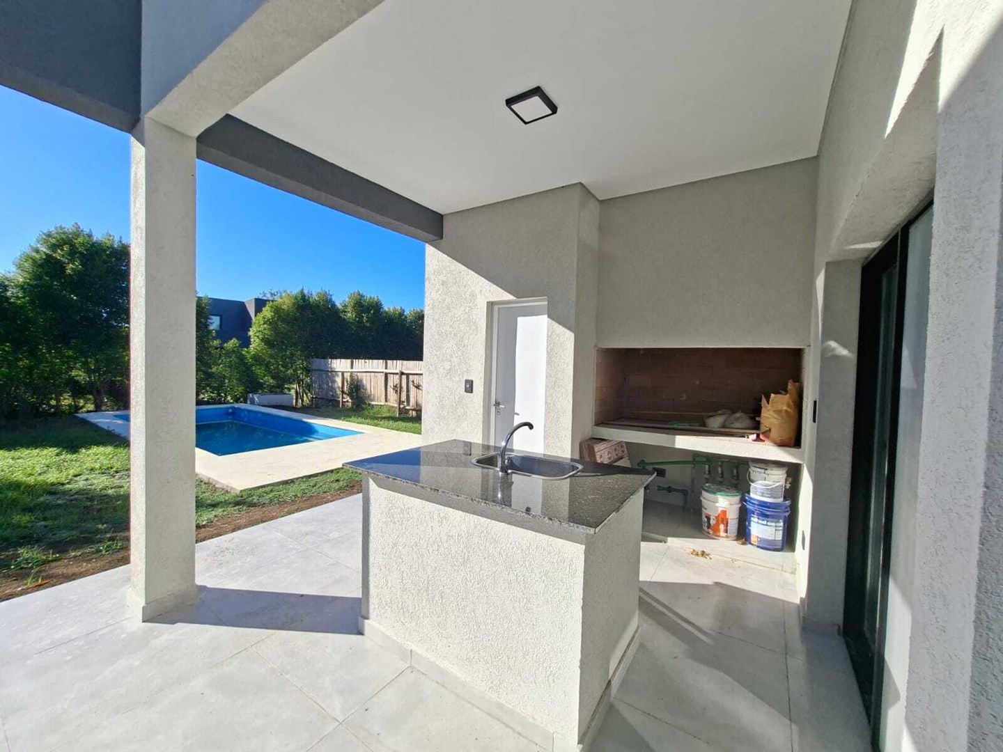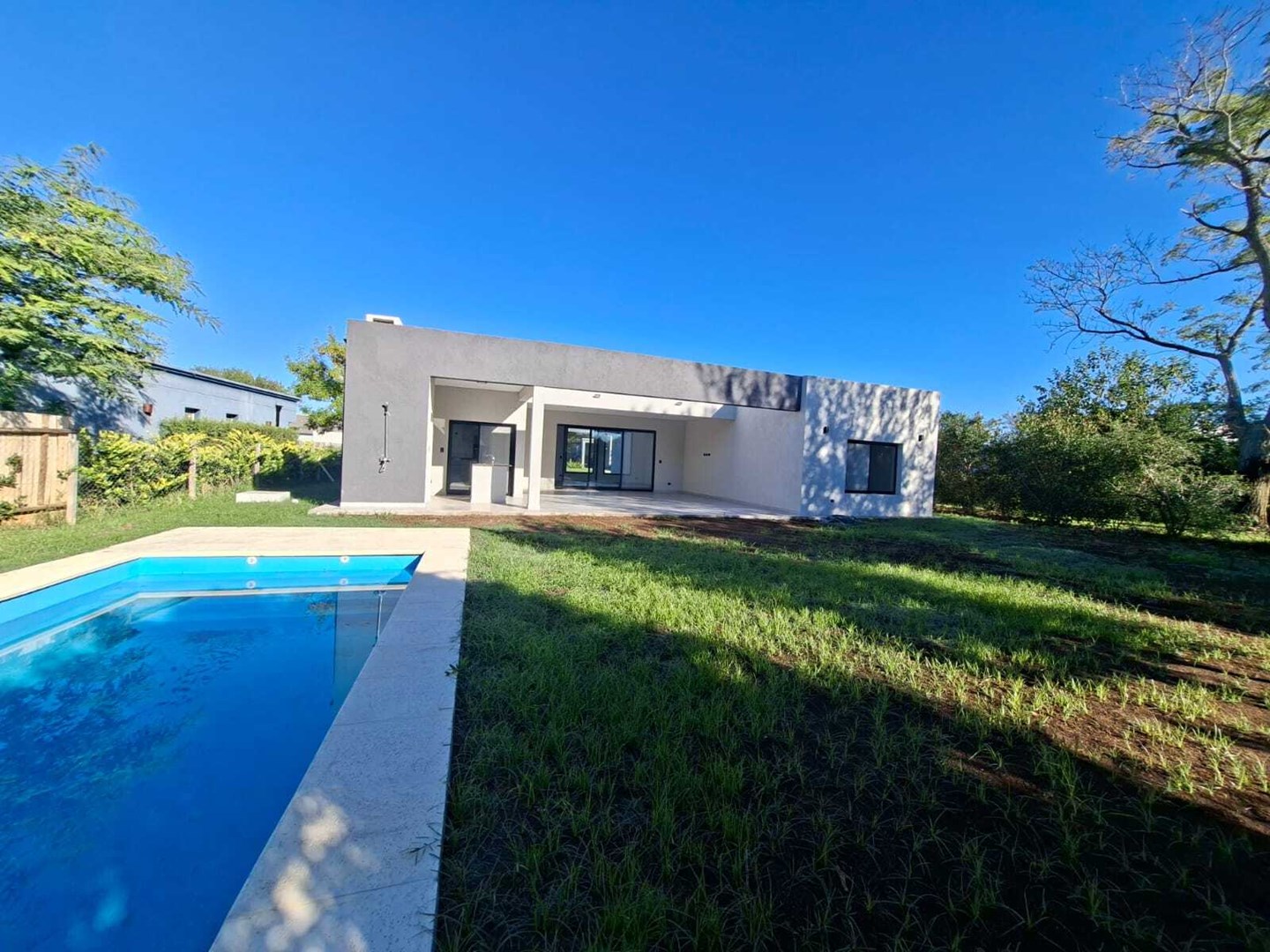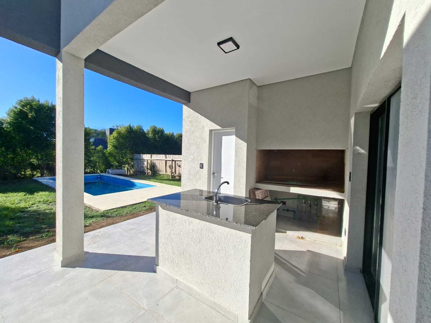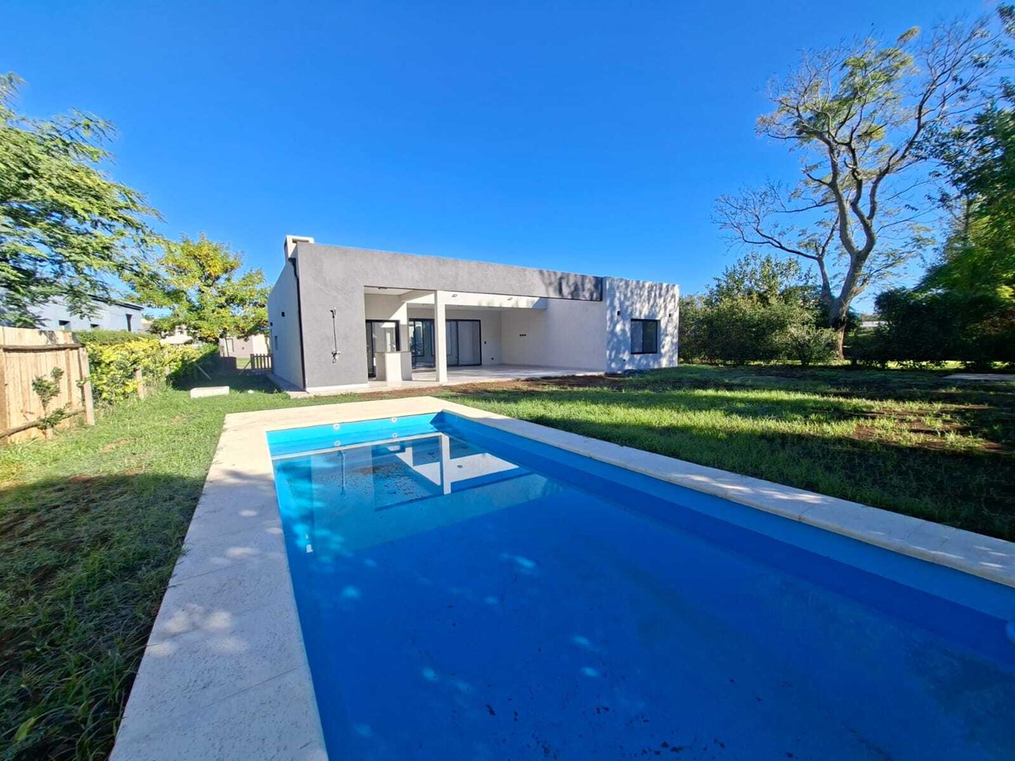 Casa a estrenar en una planta ubicada en el Barrio privado San Matías en Area 4, construida sobre lote interno , muy luminosa y funcional, con techo a doble altura. Al ingreso amplio living comedor, cocina semi integrada con doble con comedor diario ,horno empotrado eléctrico y anafe a gas, campana TST de acero inoxidable. Entrada lateral por cochera al lavadero. Escritorio o 4ta habitación. Baño completo. En área privada, 3 habitaciones. Principal en suite con vestidor y dos habitaciones con placard que comparten un baño completo. En el exterior de la casa gran galería semicubierta , parrilla con bacha y mesada. Baño completo de piscina. Hermoso jardín con arboleda, Piscina de hormigón con gran solárium y equipo de filtrado de 1hp. La entrada de la casa es de pórfido con acceso vehicular , peatonal . Las aberturas de la casa son de aluminio en perfiles A30, modena con DVH. Pre-instalación de aire acondicionado en todos los ambientes. Calefacción por piso radiante con caldera dual Baxi a gas natural. Construcción convencional de ladrillos con platea de hormigón H21 y techo de losa mas membrana. Corredor responsable Paola Fittipaldi CSI 7175. kc.