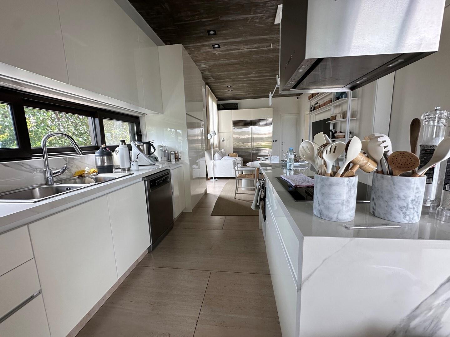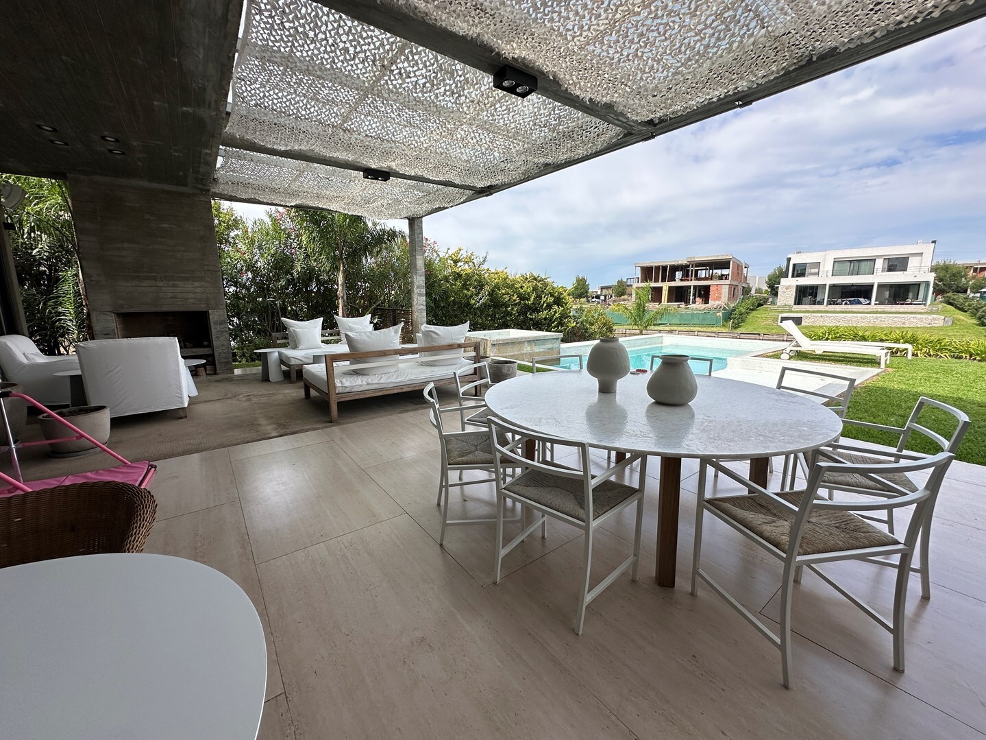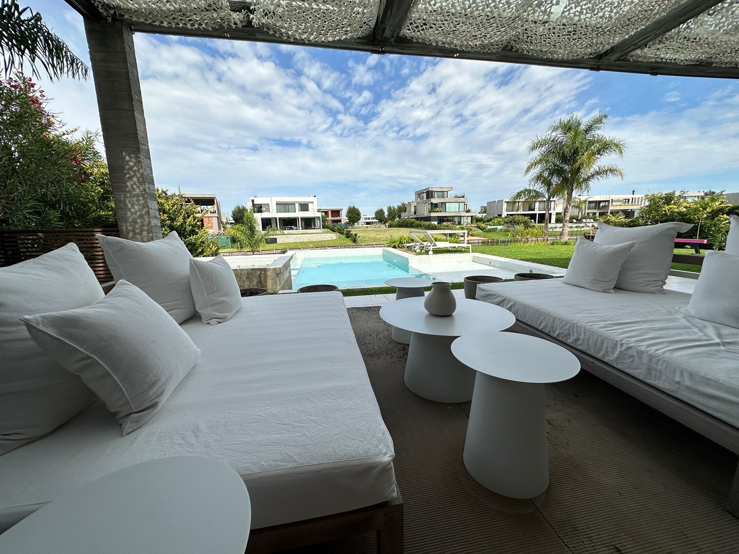 Espectacular casa moderna al lago en el barrio Virazón, Nordelta, con diseño contemporáneo y funcional. Se destaca por sus techos altos, grandes ventanales y excelente luminosidad, ofreciendo visuales abiertas y una fuerte conexión con el exterior. El ingreso se realiza a través de un portón de hierro y madera hacia un patio interno con estanque, que aporta privacidad y carácter. Desde el hall de entrada se accede al amplio living comedor principal con vista a la galería y al lago. En esta planta también se encuentra un playroom o family room, toilette y placard de recepción. La cocina, de generosas dimensiones, cuenta con isla central, espacio para dos heladeras dobles y sector de comedor diario o family, con salida directa a la galería. El área de servicio es independiente e incluye lavadero y dependencia de servicio completa. La galería es amplia y está equipada con hogar exterior, parrilla y barra con bacha, ideal para reuniones sociales. El jardín cuenta con pileta totalmente revestida en venecitas, jacuzzi exterior y acceso al muelle con salida directa al lago. En la planta alta se desarrolla la suite principal, con vestidor de gran tamaño y baño completo compartimentado. La casa dispone además de tres dormitorios adicionales, dos baños completos y un espacio de escritorio o playroom. Cuenta con cochera semicubierta para dos autos. Implantada sobre un lote de aproximadamente 1.000 m², con una superficie total construida cercana a los 500 m², esta propiedad se posiciona dentro del segmento premium del barrio. CMCPSI 7175 SK