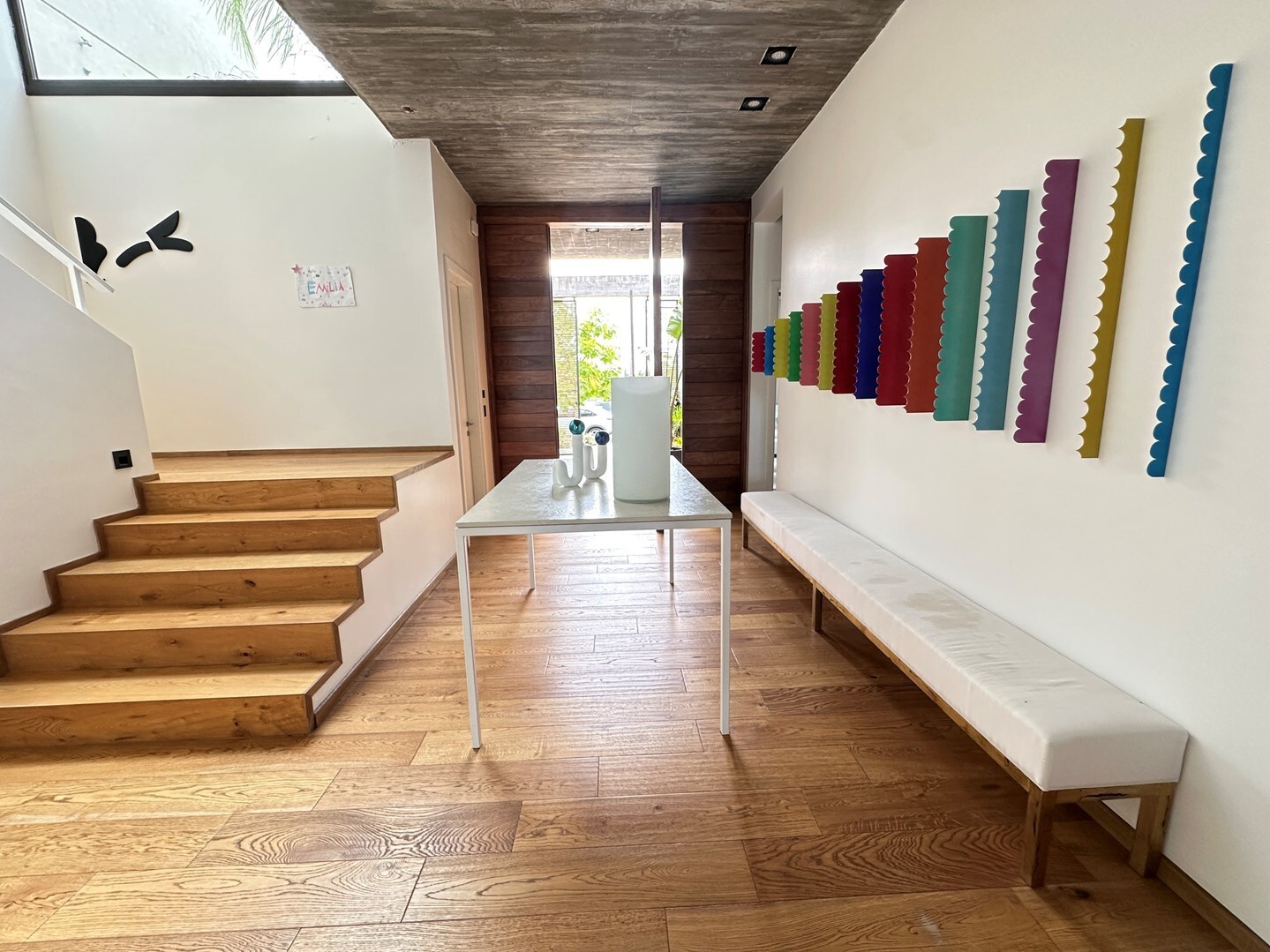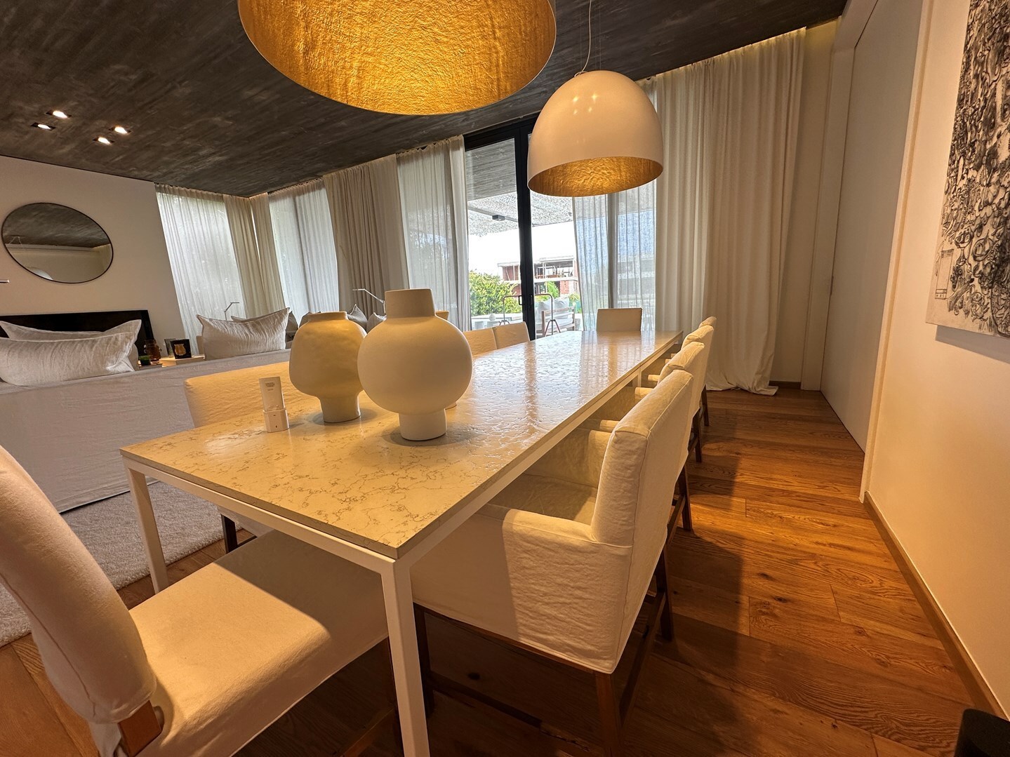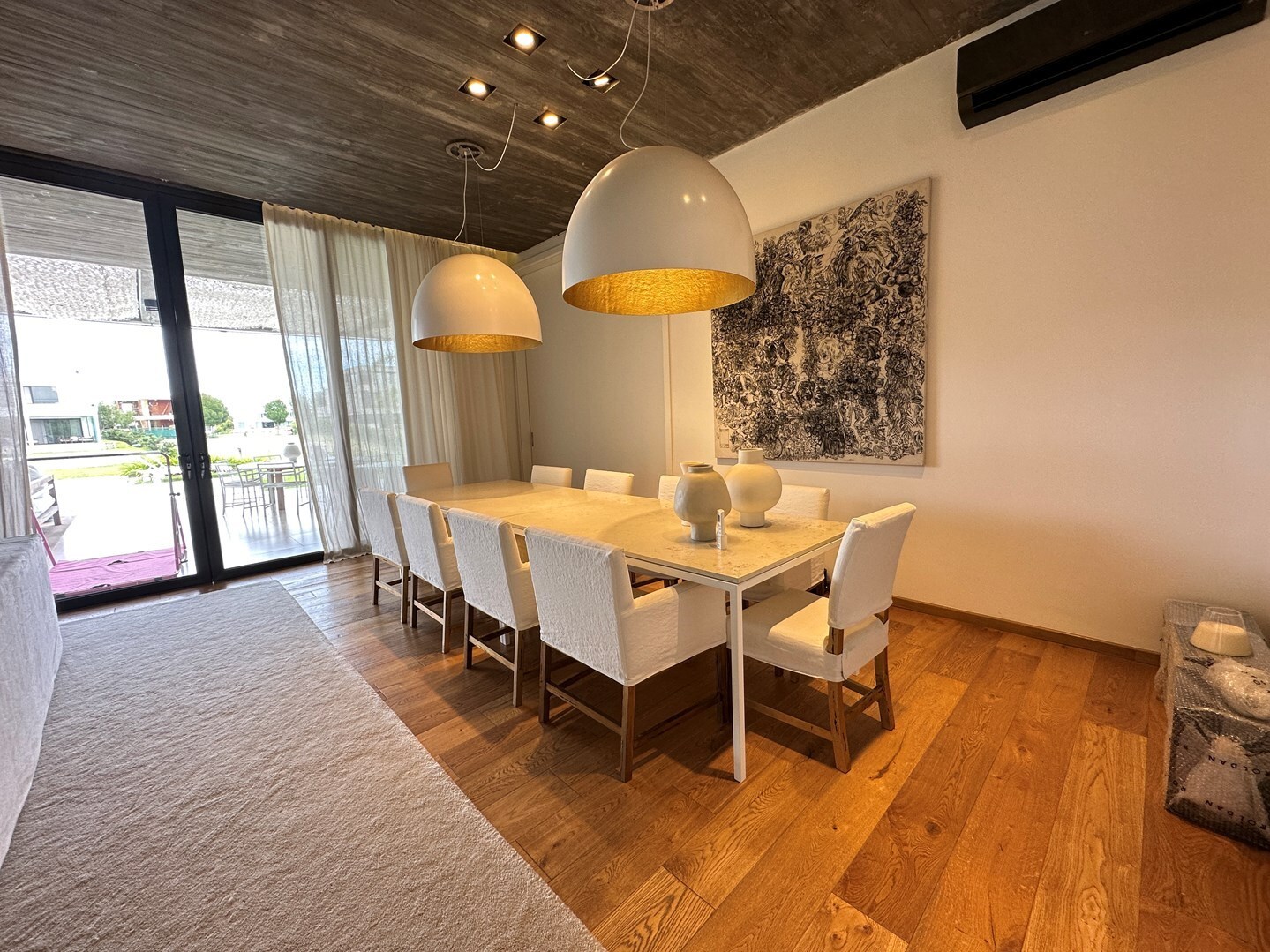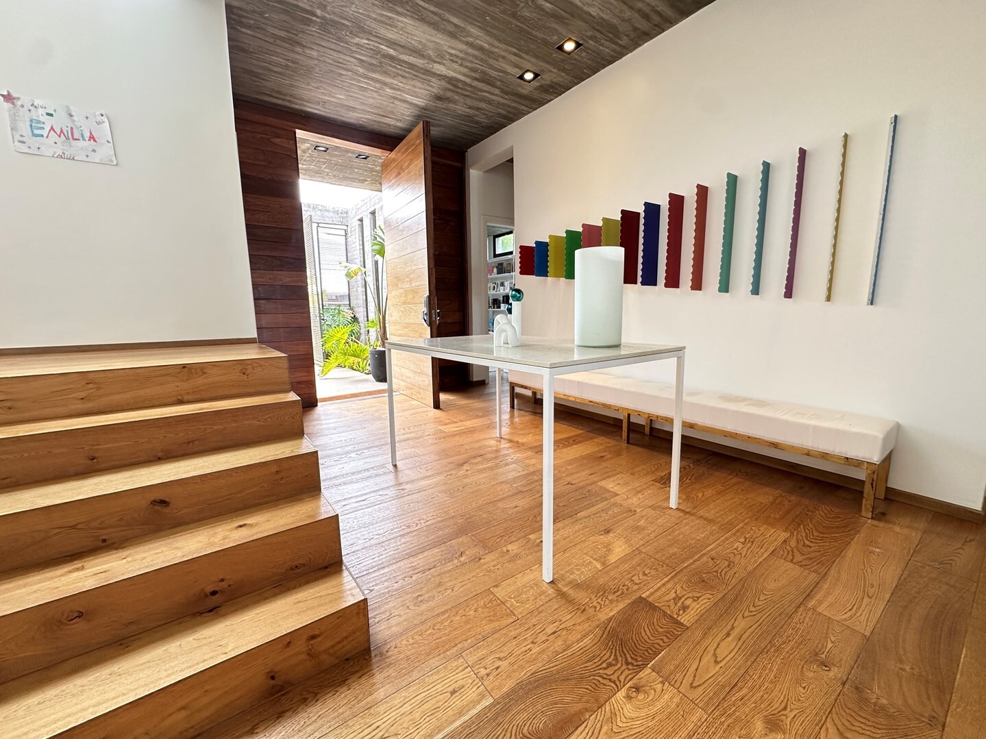 Espectacular casa moderna al lago en el barrio Virazón, Nordelta, con diseño contemporáneo y funcional. Se destaca por sus techos altos, grandes ventanales y excelente luminosidad, ofreciendo visuales abiertas y una fuerte conexión con el exterior. El ingreso se realiza a través de un portón de hierro y madera hacia un patio interno con estanque, que aporta privacidad y carácter. Desde el hall de entrada se accede al amplio living comedor principal con vista a la galería y al lago. En esta planta también se encuentra un playroom o family room, toilette y placard de recepción. La cocina, de generosas dimensiones, cuenta con isla central, espacio para dos heladeras dobles y sector de comedor diario o family, con salida directa a la galería. El área de servicio es independiente e incluye lavadero y dependencia de servicio completa. La galería es amplia y está equipada con hogar exterior, parrilla y barra con bacha, ideal para reuniones sociales. El jardín cuenta con pileta totalmente revestida en venecitas, jacuzzi exterior y acceso al muelle con salida directa al lago. En la planta alta se desarrolla la suite principal, con vestidor de gran tamaño y baño completo compartimentado. La casa dispone además de tres dormitorios adicionales, dos baños completos y un espacio de escritorio o playroom. Cuenta con cochera semicubierta para dos autos. Implantada sobre un lote de aproximadamente 1.000 m², con una superficie total construida cercana a los 500 m², esta propiedad se posiciona dentro del segmento premium del barrio. CMCPSI 7175 SK